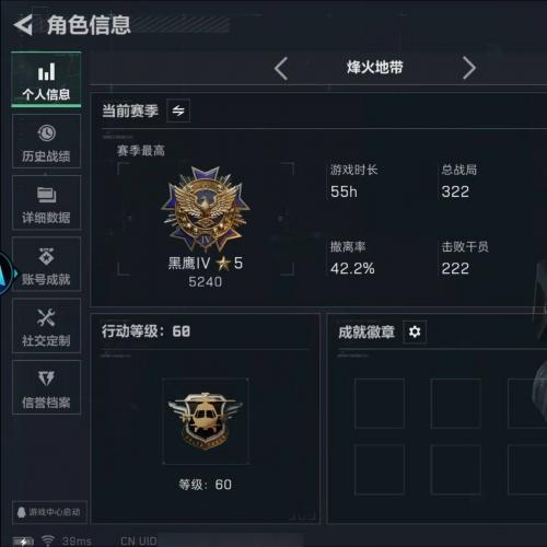 总资产102.2M 3干员外观 1近战 20传说枪械 烽火:黑鹰 战场:列兵区服类型: 三角洲行动 |