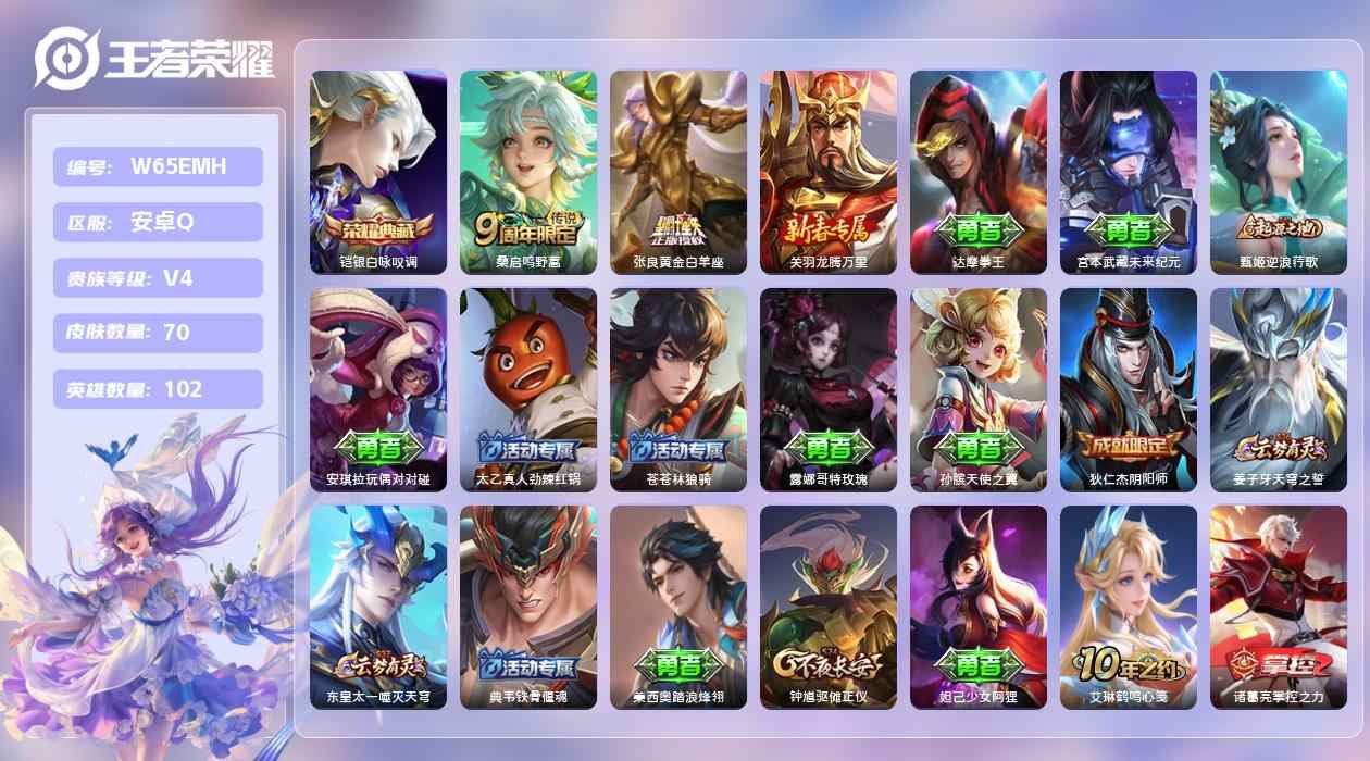 V8 2典藏 13传说 76史诗 277皮肤 最强王者...¥700.00