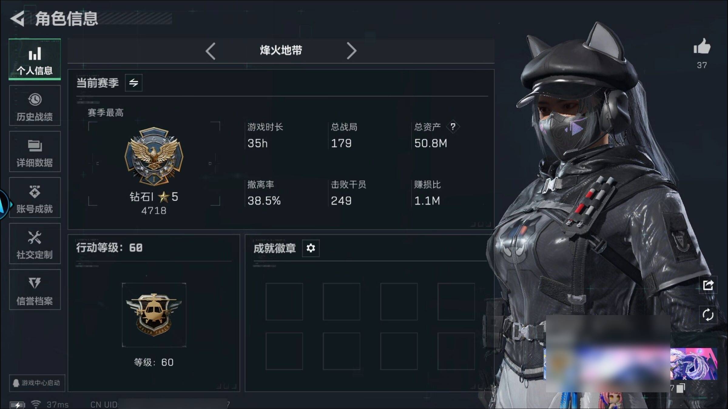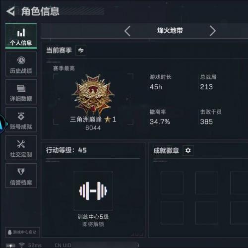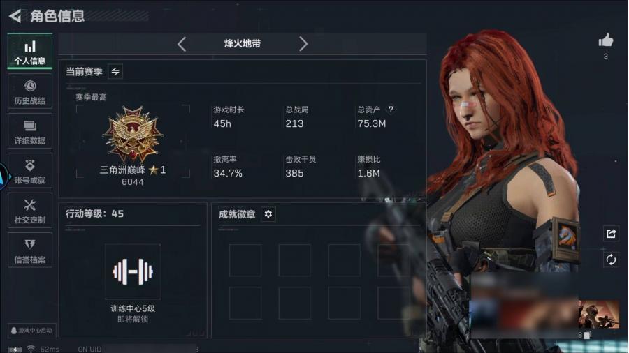 总资产95.8M 6干员外观 1近战 30传说枪械 烽火:三角洲巅峰 战场:上等兵