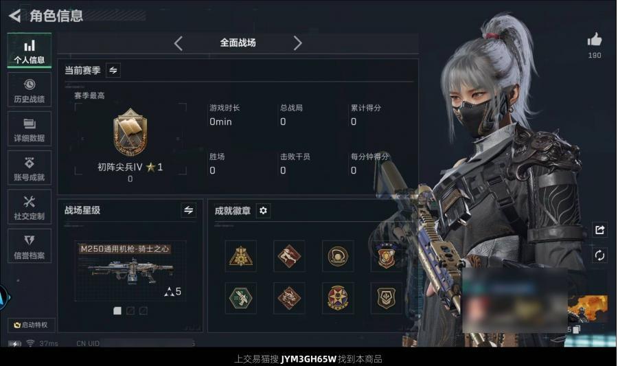 总资产87.3M 3干员外观 15传说枪械 烽火:黑鹰 战场:上等兵...