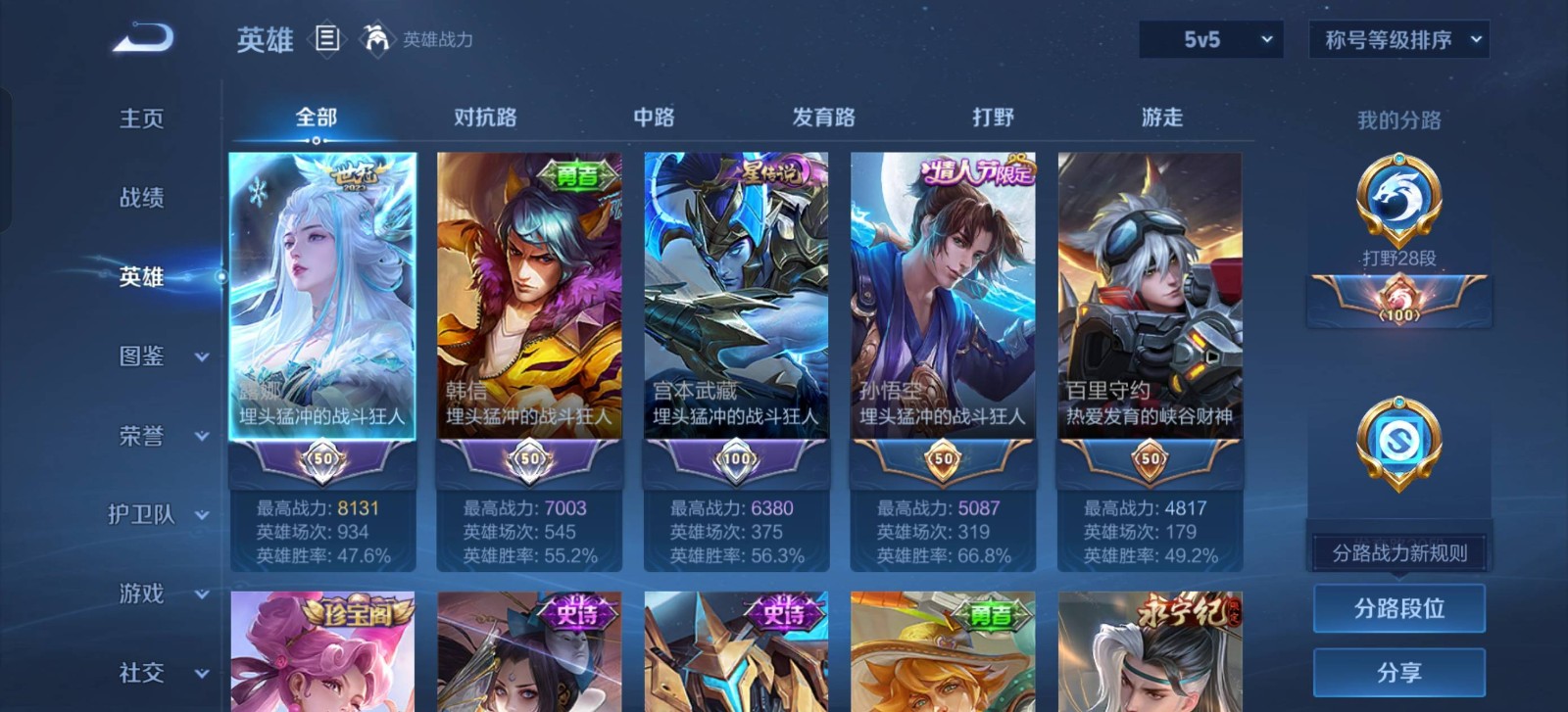 V10 3典藏 5无双 69传说 146史诗 468皮肤 无双王者