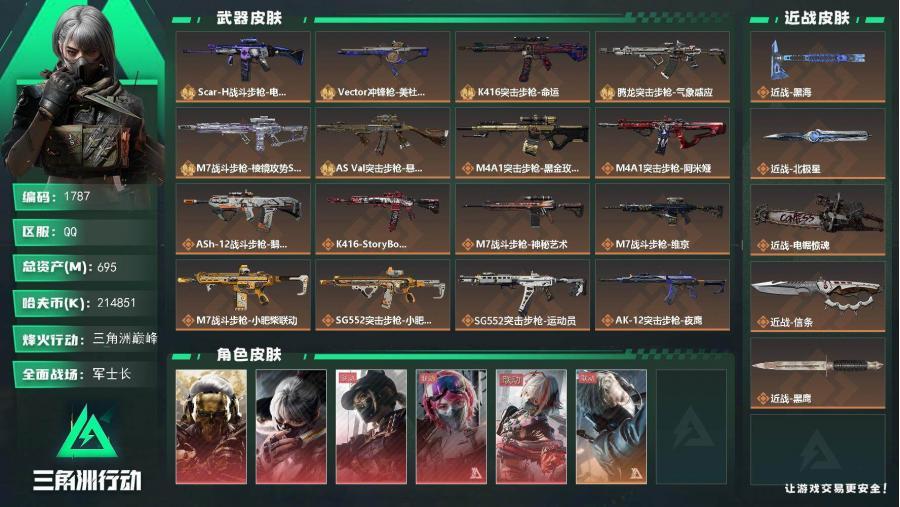 总资产695M 11干员外观 4传说近战 三角洲巅峰