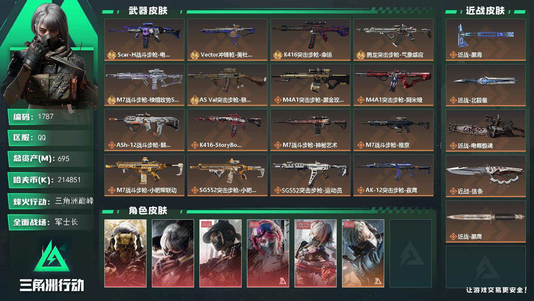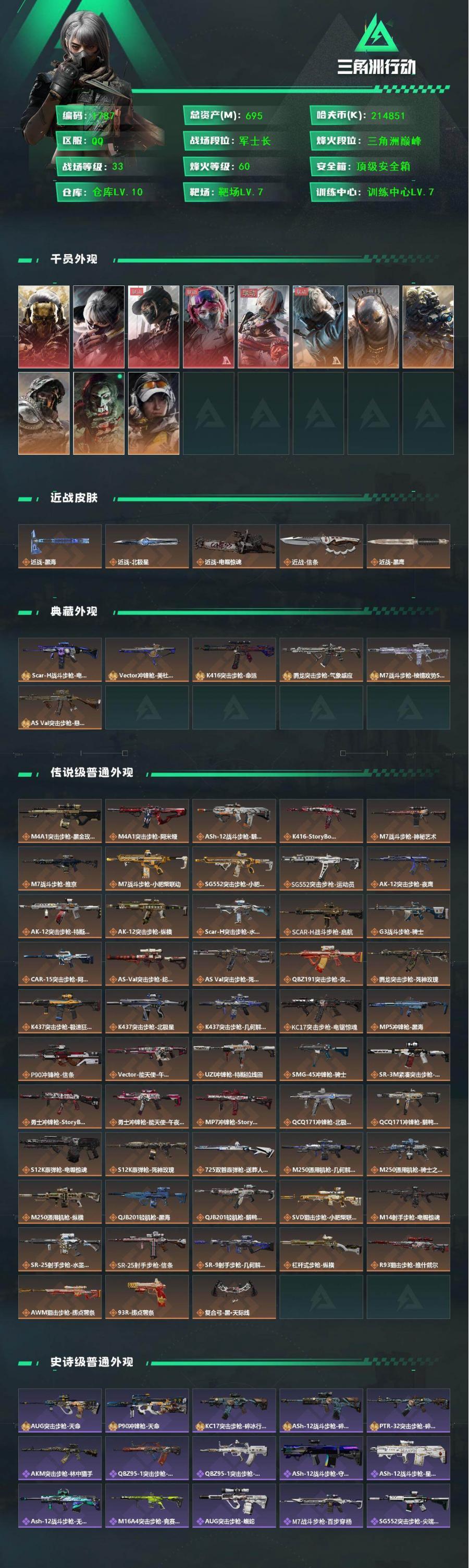 总资产1.3B 9干员外观 3近战 33传说枪械 烽火:黄金 战场:上等兵