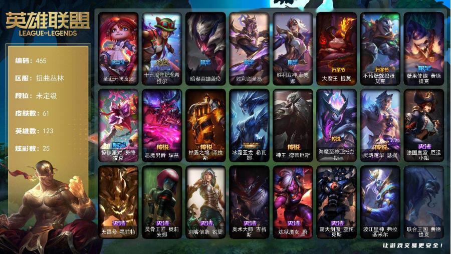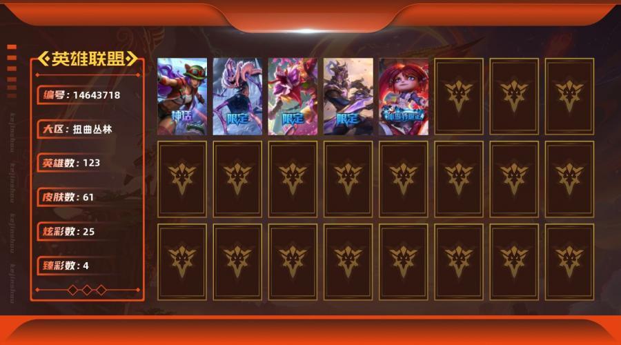 19神话 71传说 327史诗 565皮肤 132英雄 铂金