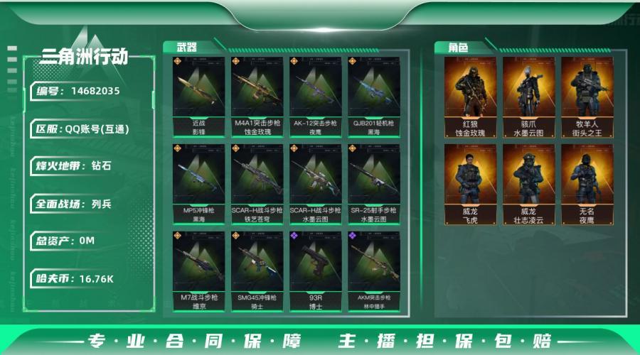 蚀金玫瑰套 水墨云图套 黑海套 161M 16762K哈夫币 161枪皮 22级通行证等级 60行动等级 7战场等级 高级安全箱(2X3)已开【套装】 蚀金玫瑰套 水墨云图套 黑海套 【安全箱】 高级安全箱(2X3) 【特战干员外观】 骇爪-水墨云图 红狼-蚀金玫瑰 /蝴蝶刀 威龙-飞虎 牧羊人-街头之王 威龙-壮志凌云 无名-夜鹰 【近战武器】 影锋 黑海 黑鹰 【传说枪皮】 725双管霰弹枪送葬人-无题密令 SR-25射手步枪-水墨云图 SCAR-H战斗步枪-水墨云图 SCAR-H战斗步枪-铁艺苍穹 AK-12突击步枪-夜鹰 QJB201轻机枪-黑海 MP5冲锋枪-黑海 SMG45冲锋枪-骑士 M7战斗步枪-维京 M4A1突击步枪-蚀金玫瑰 【史诗枪皮】 SCAR-H战斗步枪-危险实验 AS Val突击步枪-刀锋 UZI冲锋枪-危险实验 PSG1射手步枪-无垢 M249轻机枪-维京 PKM通用机枪-蝮蛇 QSZ92G-风林火山 PTR32突击步枪-英雄 M4A1突击步枪-特勤执行 Vector冲锋枪-红色彗星 PKM通用机枪-英雄 PTR-32突击步枪-ACE SVD狙击步枪-暗夜猎手 Vector冲锋枪-阿萨拉文明 AKM突击步枪-林中猎手 PKM通用机枪-守夜人 MP5冲锋枪-深海恐惧 勇士冲锋枪-深海恐惧 M700狙击步枪-竞技风 SG552突击步枪-深海恐惧 SR-3M紧凑突击步枪-英雄 AS Val突击步枪-尖端治疗 SR-25射手步枪-尖端治疗 SG552突击步枪-尖端治疗 Ash-12战斗步枪-守夜人 M1014霰弹枪-林中猎手 QBZ95-1突击步枪-曙光 S12K霰弹枪-曙光 沙漠之鹰-曙光 93R-博士 G3战斗步枪-战场英杰 QBZ95-1突击步枪-ACE AUG突击步枪-蝮蛇 AUG突击步枪-特勤执行 SKS射手步枪-ACE PX_2056733